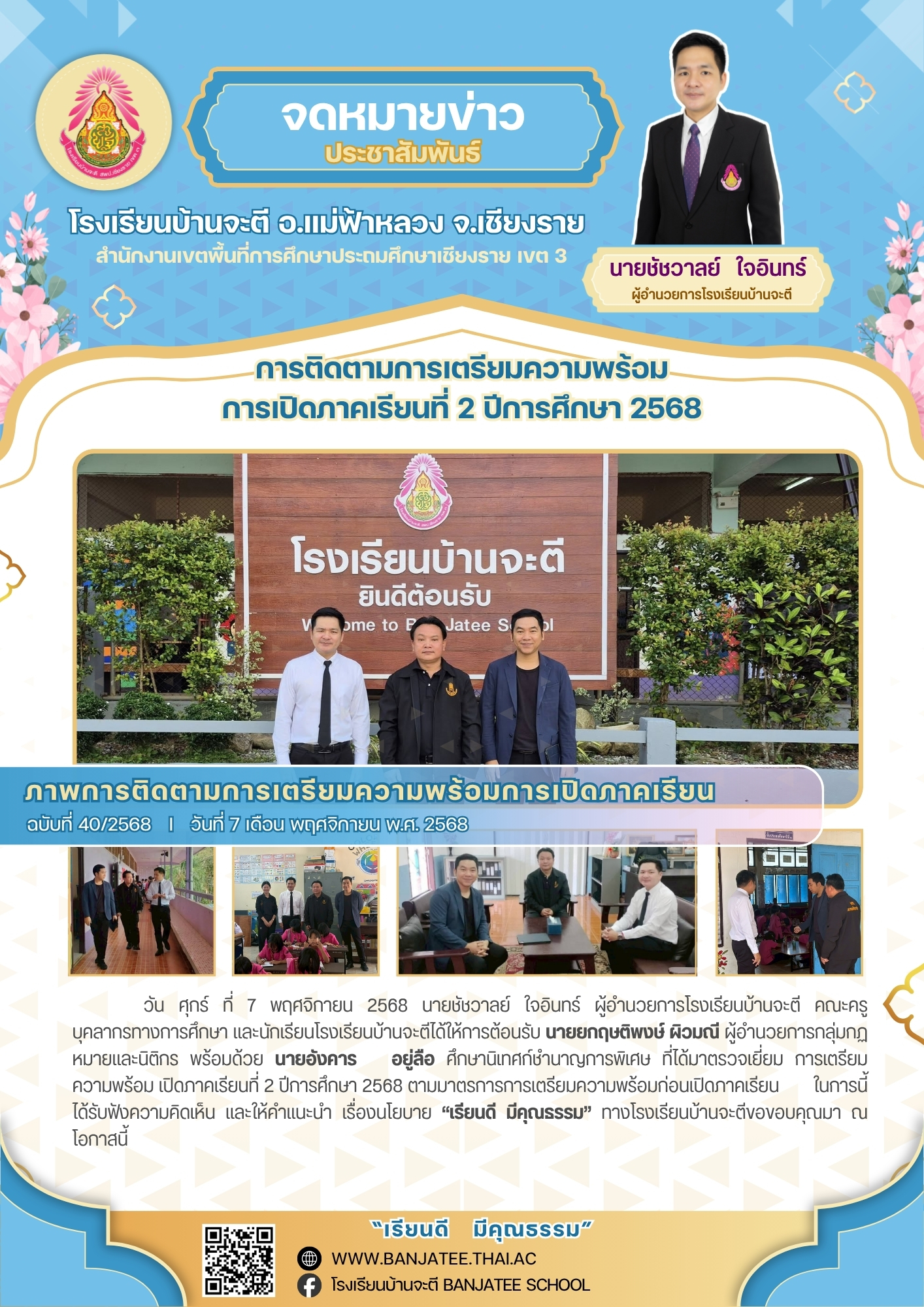 ต้อนรับ คณะตรวจเยี่ยม การเตรียมความพร้อม เปิดภาคเรียนที่ 2 ปีการศึกษา 2568